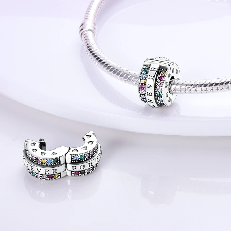 View New CollectionЗавинаги блестящ е символ на вечната любов, приятелство и радост от живота. Изработен от сребро 925, той е украсен с искрящи разноцветни кристали, подредени в нежни линии, които създават великолепна игра на светлината. Гравираният надпис „FOREVER“ придава дълбок смисъл и лично послание на този изискан аксесоар.