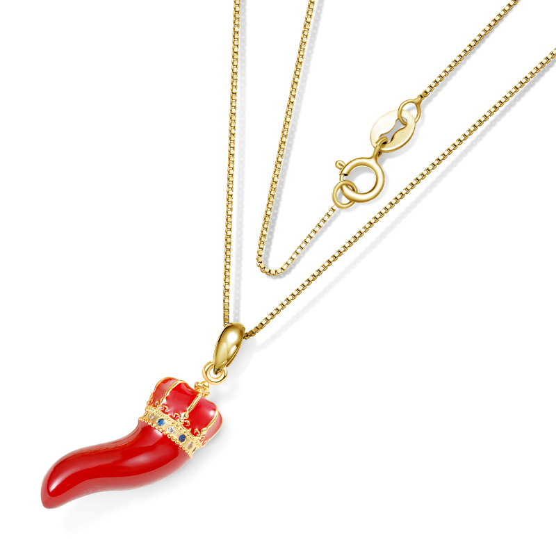 Вдъхновен от италианската традиция, късметлийският рог е известен с това, че отблъсква негативната енергия и привлича благополучие. Перфектен подарък за тези, които искат да внесат щипка късмет в своя живот или да подчертаят уникалния си стил.