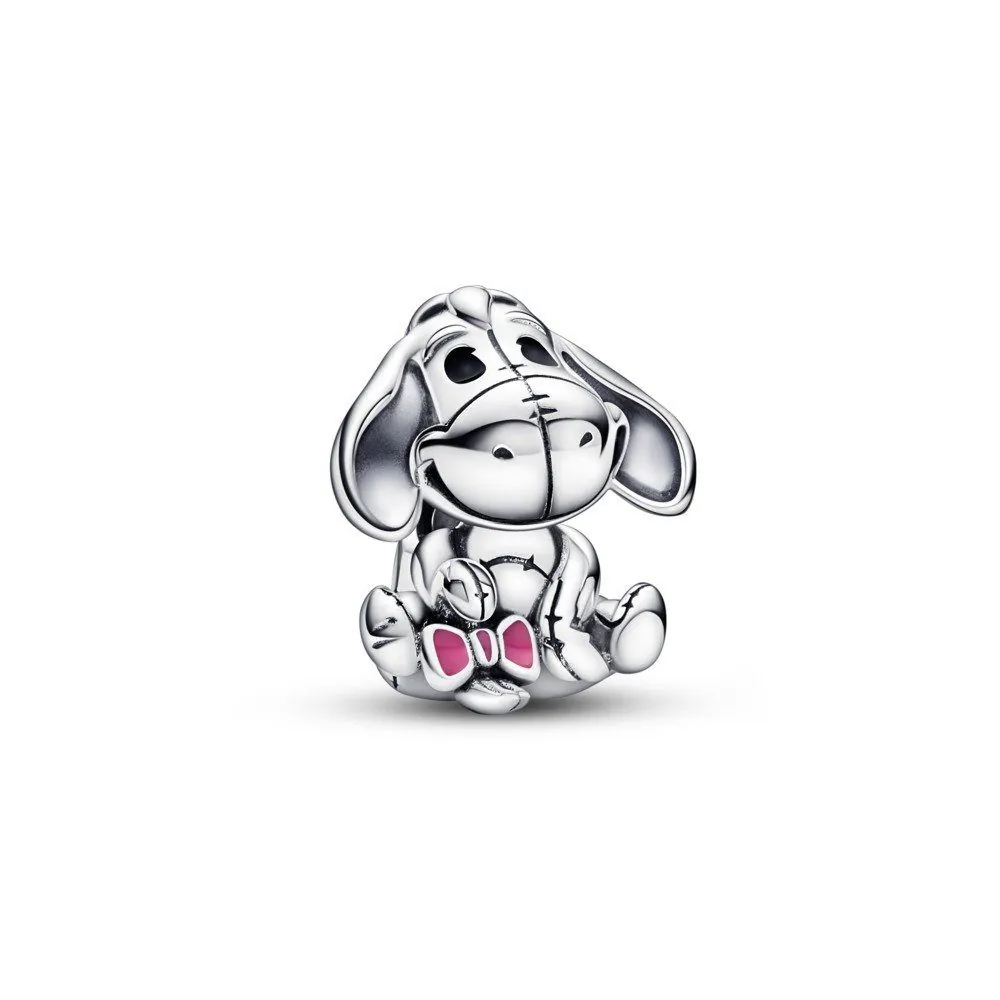 Изработена от сребро проба 925, тази висулка впечатлява с фини детайли и изящна ръчна изработка. Акцентът с розов емайл върху панделката придава деликатен контраст, подчертавайки игривия и нежния характер на фигурата.