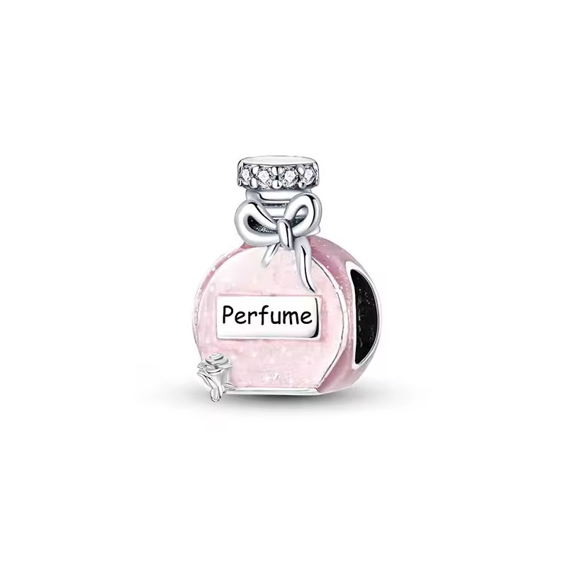 View New CollectionОчарованието на аромата е символ на изисканост и деликатна красота. С дизайн, вдъхновен от класически флакон за парфюм, този талисман е изработен от сребро 925 и емайлиран в нежно розово, излъчващ финес и стил. Блестящите детайли на капачката и елегантната панделка подчертават неговата изтънчена визия.