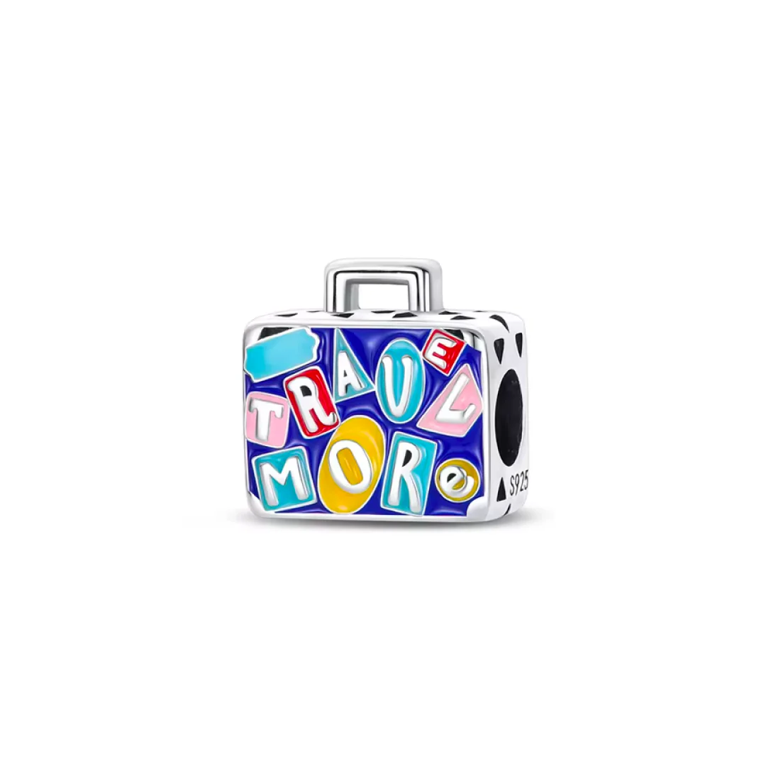 View New CollectionПътувай повече е създаден за всички, които обичат да изследват света и да се вдъхновяват от нови приключения. Изработен от сребро 925, този цветен талисман във формата на куфар е декориран с ярки емайлови букви, които формират мотото „Travel More“ – напомняне за неограничените възможности на живота.